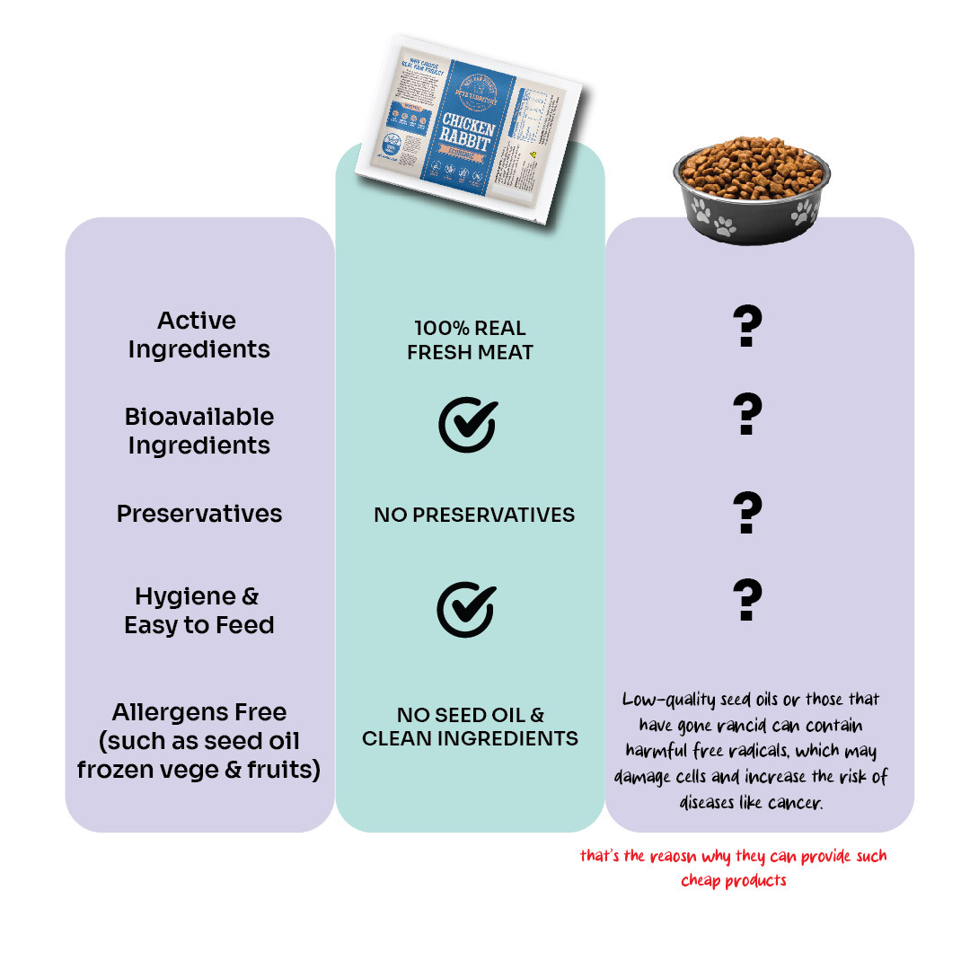 Ingredients: 80% Chicken, 10% Offals, 10% Edible Bones