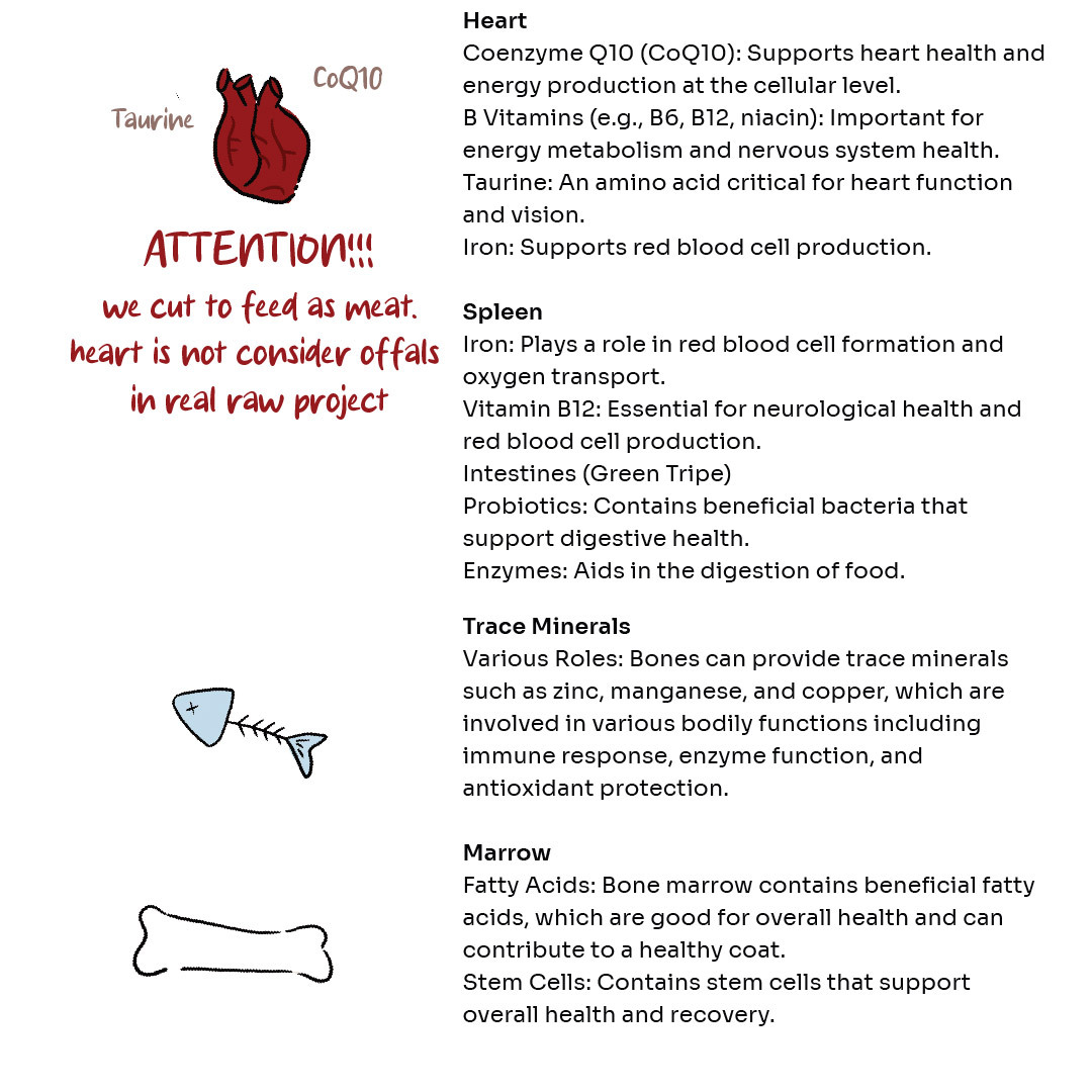 Improved coat and skin health: Contains essential fatty acids that can contribute to a healthy and shiny coat.Better dental health: Chewing on raw meat and bones can help keep teeth clean and reduce tartar buildup.
