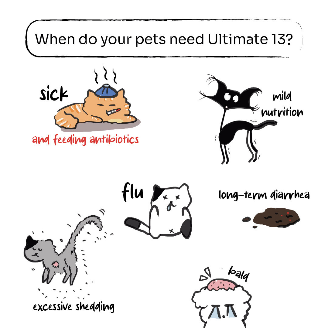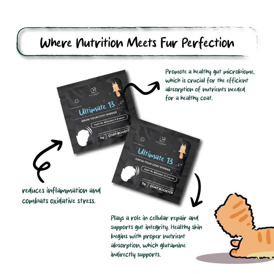 Help your feline friend thrive with Ultimate 13—because a healthy coat starts from within!